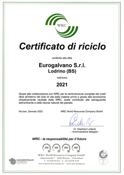 La lavorazione dei residui a contenuto metallico, insieme alla salvaguardia delle nostre risorse naturali, è stata attuata da WRC in conformità alla tutela ambientale globale e al 100% di neutralità climatica.