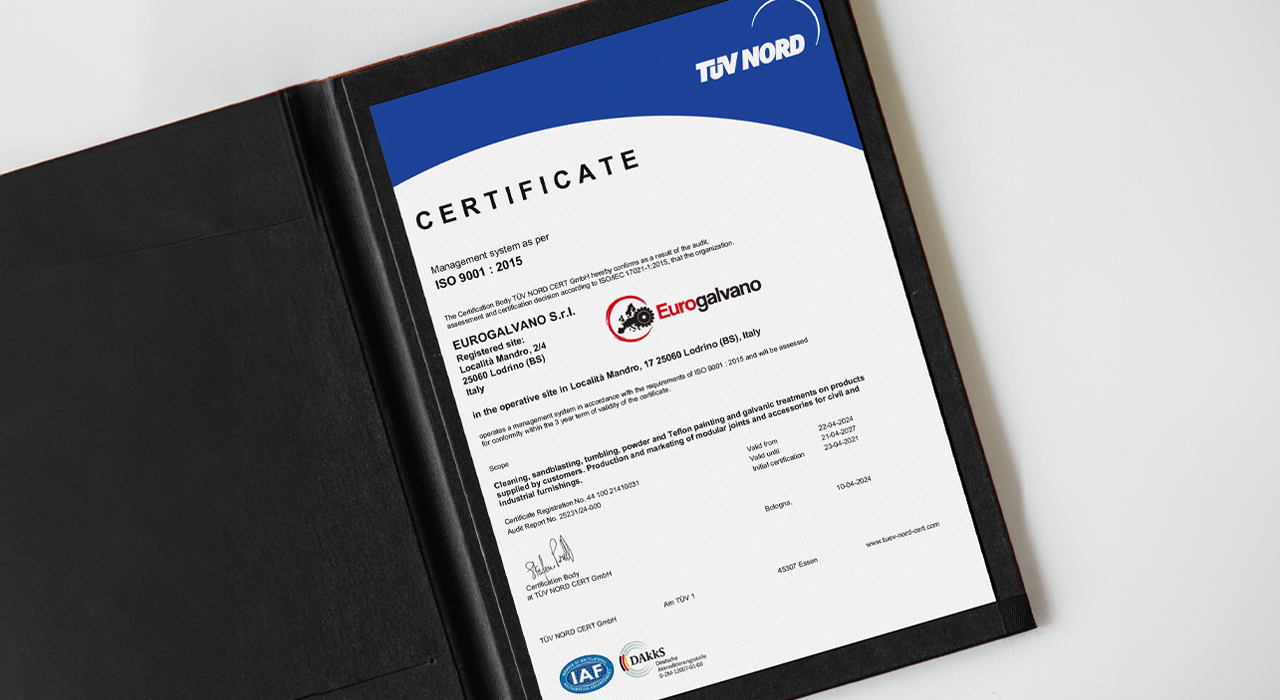 To obtain the ISO 9001: 2015 certificate, Eurogalvano S.r.l. has demonstrated that it both possesses and satisfies a whole series of specific requirements; at the same time the company has confirmed that it has a more valid quality management system in terms of production processes, quality of work and prevention of the non conformities. All this allowed us to increase the satisfaction of our customers.